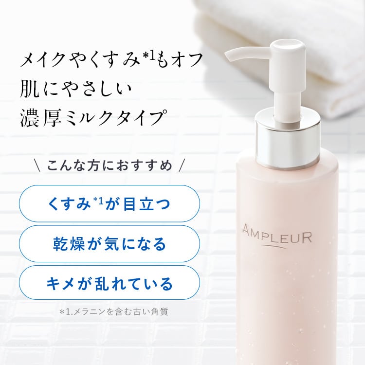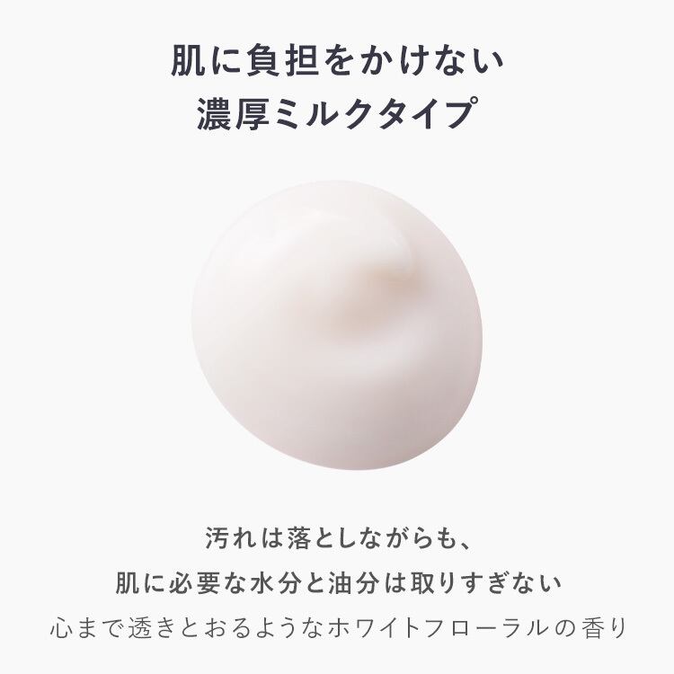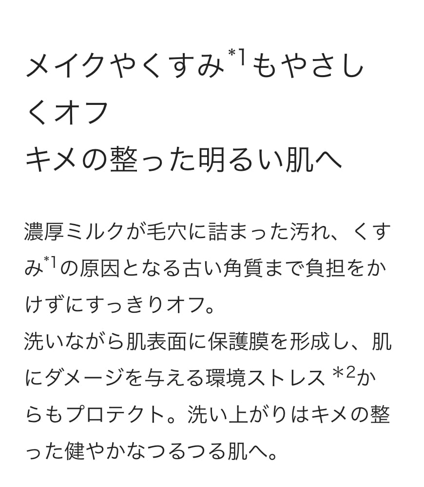 濃厚ミルクが⽑⽳に詰まった汚れ、くすみ*1の原因となる古い⾓質まで負担をかけずにすっきりオフ。