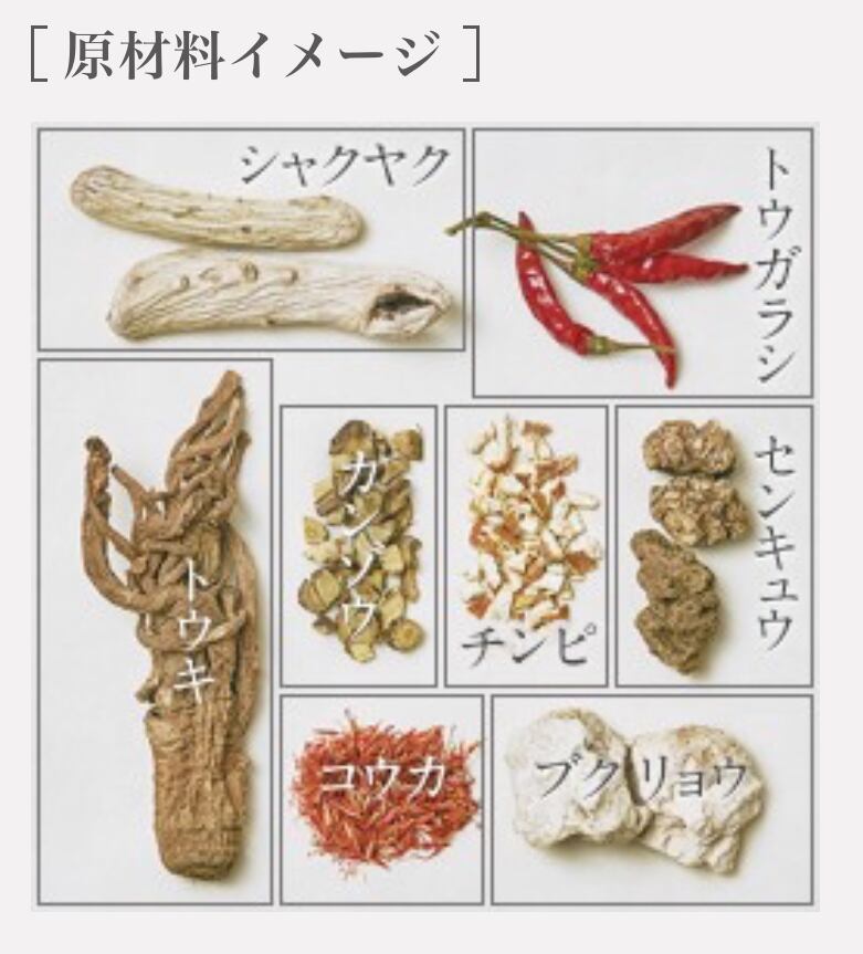 有効成分:カンゾウ、コウカ、シャクヤク、センキュウ、チンピ、トウガラシ、トウキ、ブクリョウ、無水炭酸ナトリウムによる効果・効能
